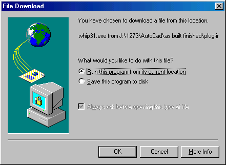 After starting the Whip! setup program the window below will appear. Select "Run this program from its current location" option and click [OK].